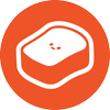 Stylized illustration of a piece of cheese with a few small holes.